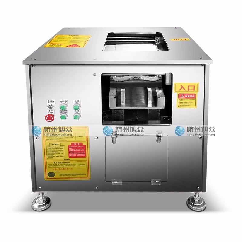 大型切魚片機(jī)(自動(dòng)進(jìn)料)采用多組刀片同時(shí)斜切的原理,完善了單刀切片效率慢和切片不均勻的難題,真正意義上實(shí)現(xiàn)了多片斜切。魚片機(jī)專業(yè)用于鮮品、雞胸、鴨胸、里脊肉片、牛肉、羊肉、各種魚柳,把需要處理的樣品放在刀梳上,機(jī)器可一次性自動(dòng)切割成片。每小時(shí)100Kg-150kg,日產(chǎn)量可達(dá)1噸以上。但是!!!此款設(shè)備最薄只能定做3mm,如要定做1.8-3mm以內(nèi)范圍的規(guī)格另擇其它魚片設(shè)備!