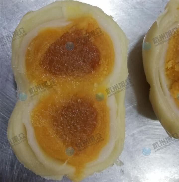 以上是人工手動加工而成的蛋黃酥,而我這次卻是要介紹用機(jī)器做出來的蛋黃酥,并且做出來的口感并不比人工差,我們自以為食品都是人工做的,其實(shí)背后也許說不定是蛋黃酥機(jī)在生產(chǎn),只不過我們不知道而已,為什么這么說呢?前段時(shí)間某客戶咨詢到做蛋黃酥的機(jī)器,本來旭眾設(shè)備是沒有蛋黃酥機(jī)的設(shè)備,但是通過幾臺機(jī)器的組合使用,那么餡中餡包餡中餡的蛋黃酥也就不再是問題了,那么是哪幾臺機(jī)器的組合呢?
