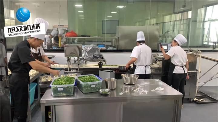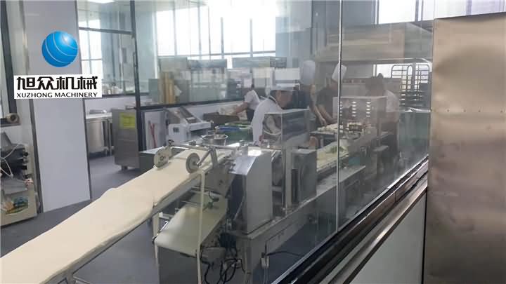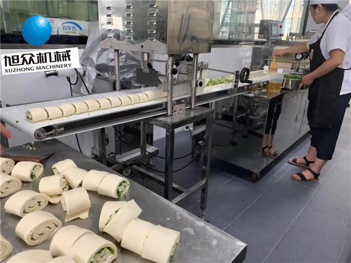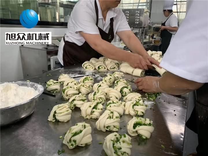 廣西某單位食堂使用我們275包子饅頭組合機(jī)~加長(zhǎng)機(jī)身定制生產(chǎn)花卷效果杠杠的